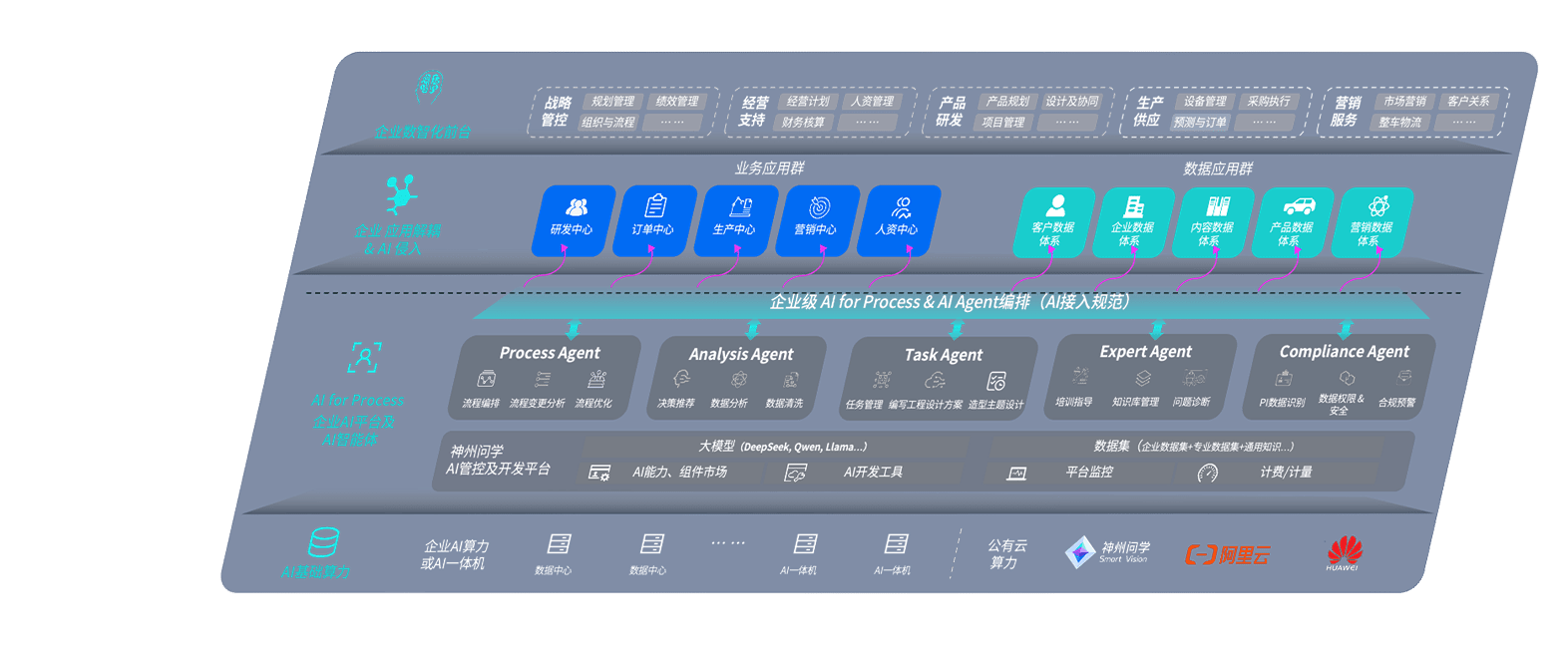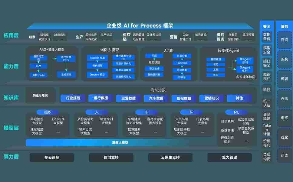 端到端的一站式AI工作空间深度融合了从企业战略规划到日常经营的全流程业务板块,,定向解决车企内部领域多、、部门多、、、链条长、、场景碎片化等难题,,,支持车企快速构建以AI为核心的生产力写作体系,,,,实现任务执行与AI能力的无缝集成与交互